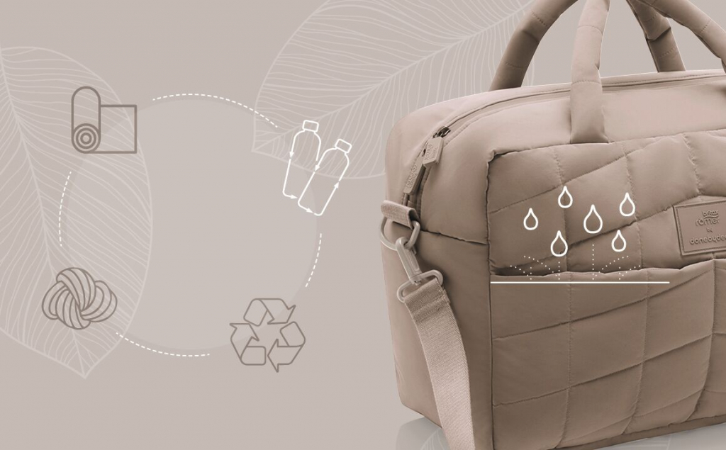 Vyrobena z 48 recyklovaných PET lahví, taška i podložka jsou šetrné k přírodě. Materiál je měkký, odolný, nepromokavý a navržený tak, aby vydržel celé dětství vašeho dítěte.