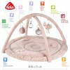 Na dvou hrazdičkách jsou zavěšeny další hračky: chrastítko s kroužky, skrytá rolnička v míčku, zrcátko a plameňák s realistickým zvířecím zvukem. Tyto prvky upoutají pozornost dítěte, prodlouží dobu soustředění a přinesou radost ze hry.