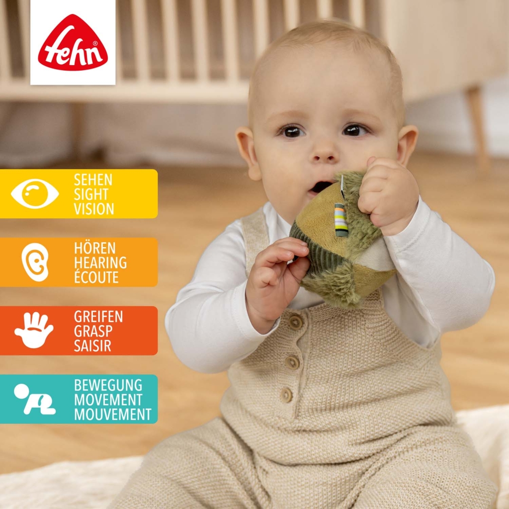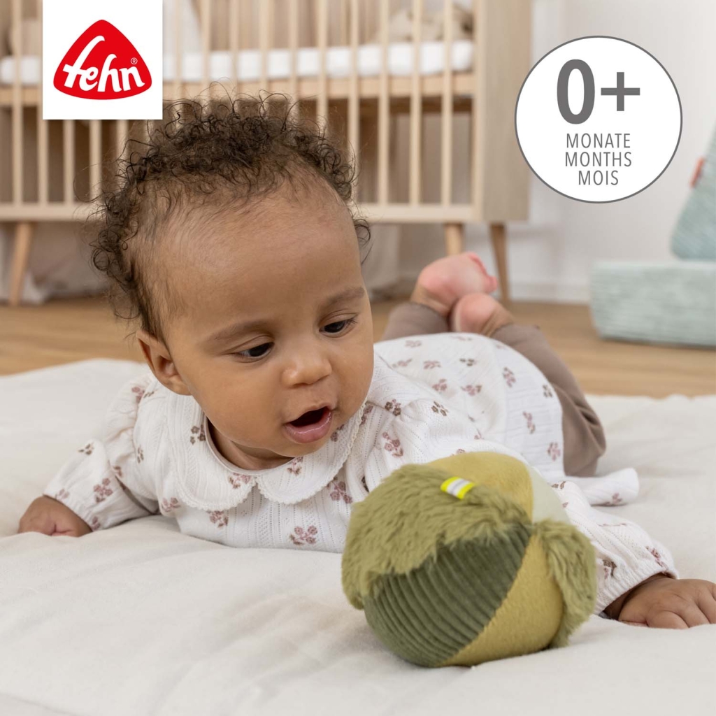 Kutálení, třesení, postrkování – s hebkým míčkem z kolekce Lazy, Crazy & Pink od Fehn se miminka učí hravou formou objevovat svět. Malý měkký míček se rozkutálí a chrastítko uvnitř veselým zvukem upoutá pozornost dítěte, které sleduje pohyb s velkým zaujetím. Hebký míček pomáhá rozvíjet motorické dovednosti, koordinaci oko–ruka i obratnost, protože motivuje k lezení, házení a chytání.