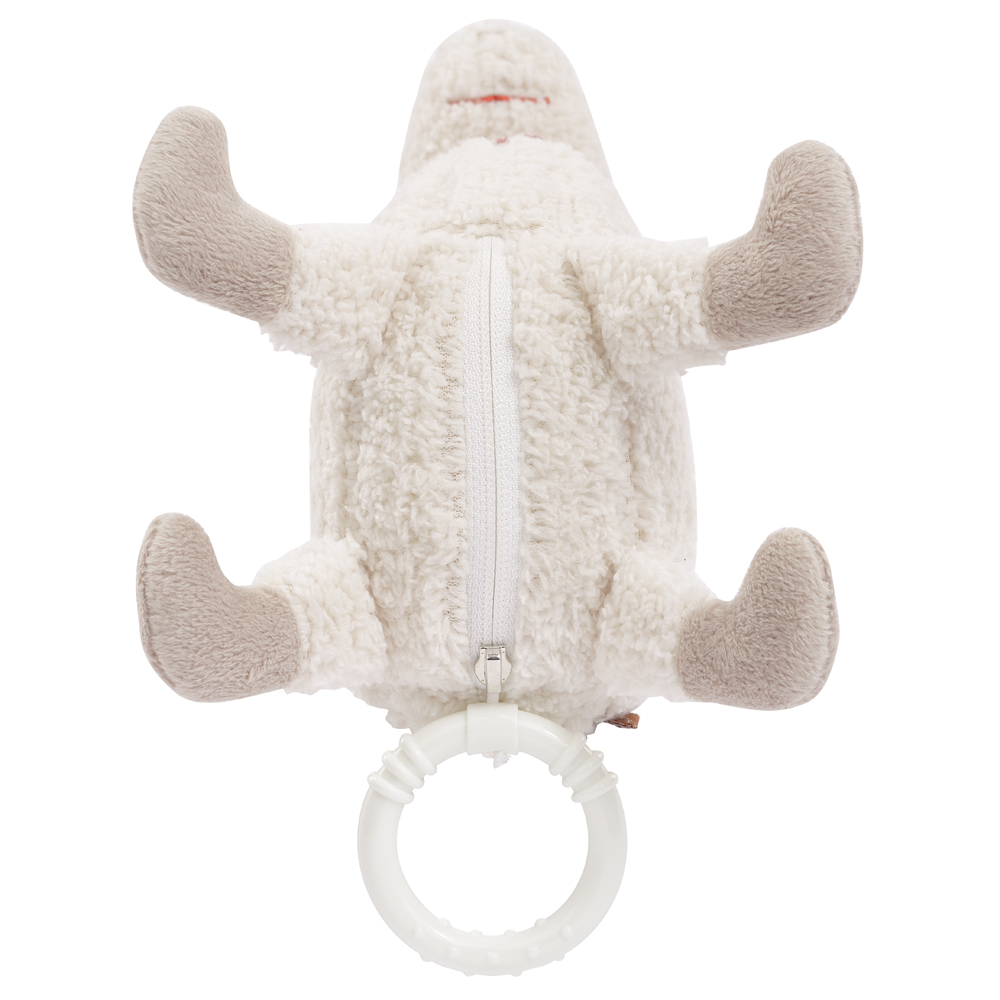 Plyšová lama s hracím strojkem, který se spouští zatažením za kroužek. Strojek lze vyjmout, hračka má zip. Příjemné tlumené barvy, a měkký materiál, to vše vybízí k mazlení a dítě uklidňuje. Díky dvěma páskům hračku rychle připevníte na kočárek, dětské sedačky a dětskou postýlku