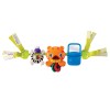 Hračka do kočárku je vhodná pro děti od narození. Nos tygra se rozsvítí a zahraje 4 melodie, když ho dítě stlačí, zebra se otáčí kolem dokola a uvnitř ní chrastí barevné korálky a v otočném zrcátku se může dítě samo vidět.Hračku lze snadno uchytit na většinu kočárků nebo autosedaček.
