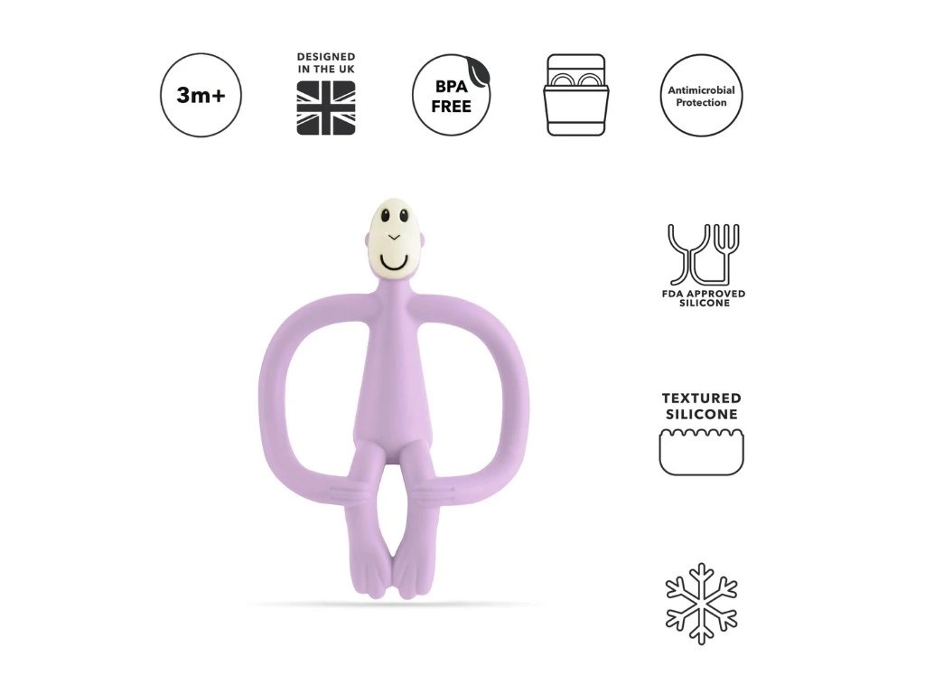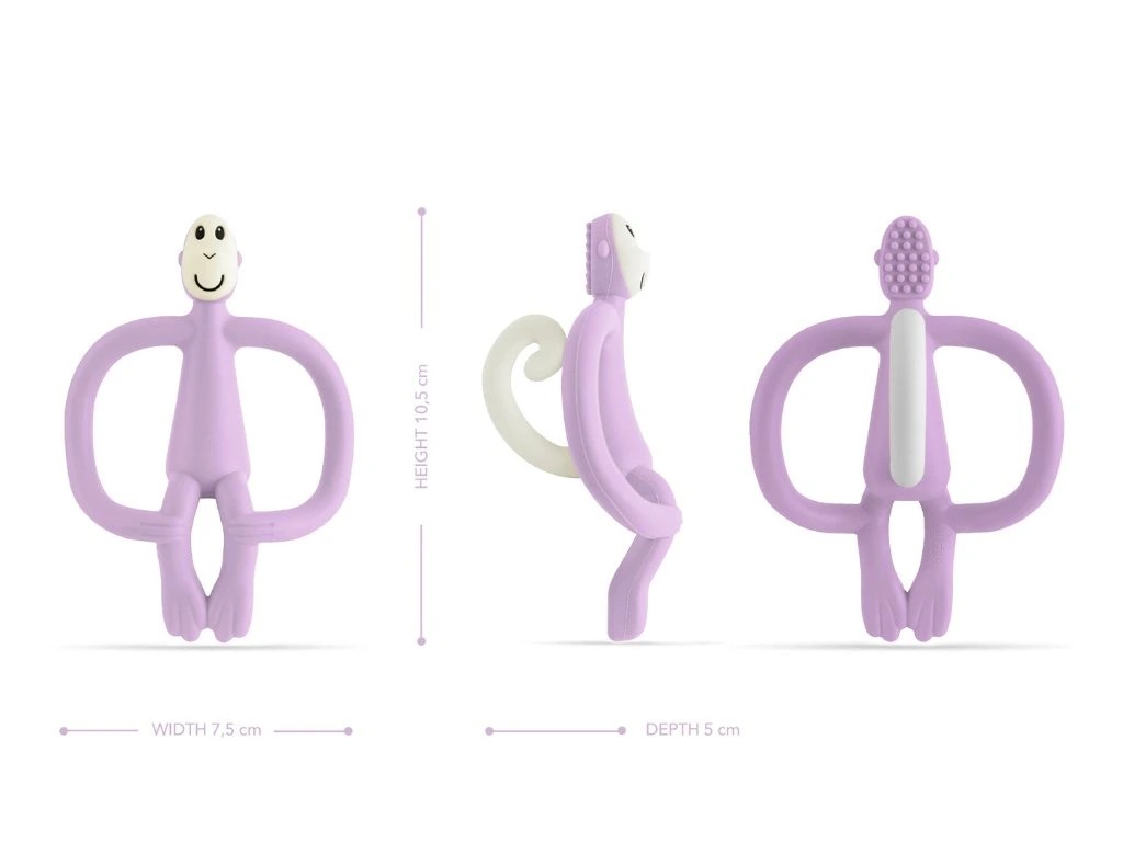 Jedinečné měkké texturované kousátko s BioCote® antimikrobiální technologií, která výrazně napomáhá udržení maximální hygienické čistoty. Vhodné pro nejmenší děti. Inovativní opička je ergonomicky navržena tak, aby se díky hrbolkům na zadní straně dostala až ke zdroji bolesti děťátka. Pomozte svému děťátku zmírnit bolest při „zoubkování“ důmyslným aplikátorem zubního gelu. Problémy při prořezávání zoubků budou konečně minulostí díky opičkovému kousátku a aplikátoru zubních přípravků v jednom!