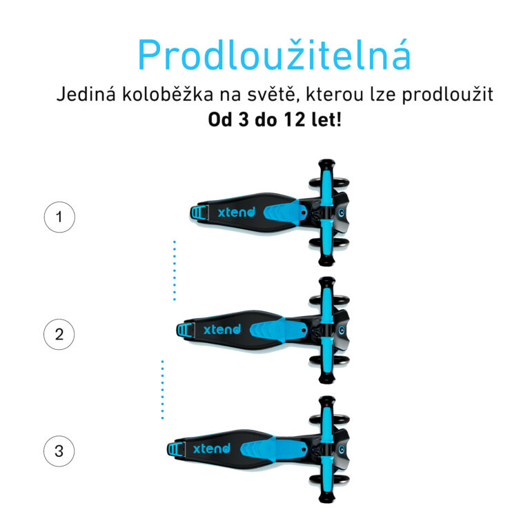 Xtend Scooter byl navržen tak, aby doprovázel svého majitele dětstvím od 3 let až do 12 let. Jedná se o koloběžku s možností prodloužení stupátka a výškového nastavení řídítek. Díky těmto funkcím je možné koloběžku využívat celou řadu let.