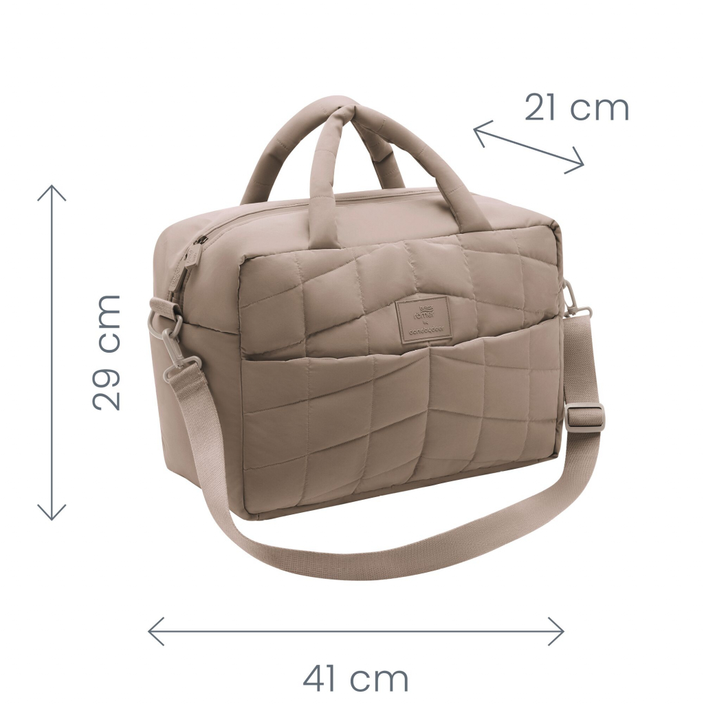 Součástí tašky je také praktická přebalovací podložka. Tašku můžete pohodlně připnout na kočárek nebo nosit přes rameno – ideální na procházky, výlety i společné aktivity.