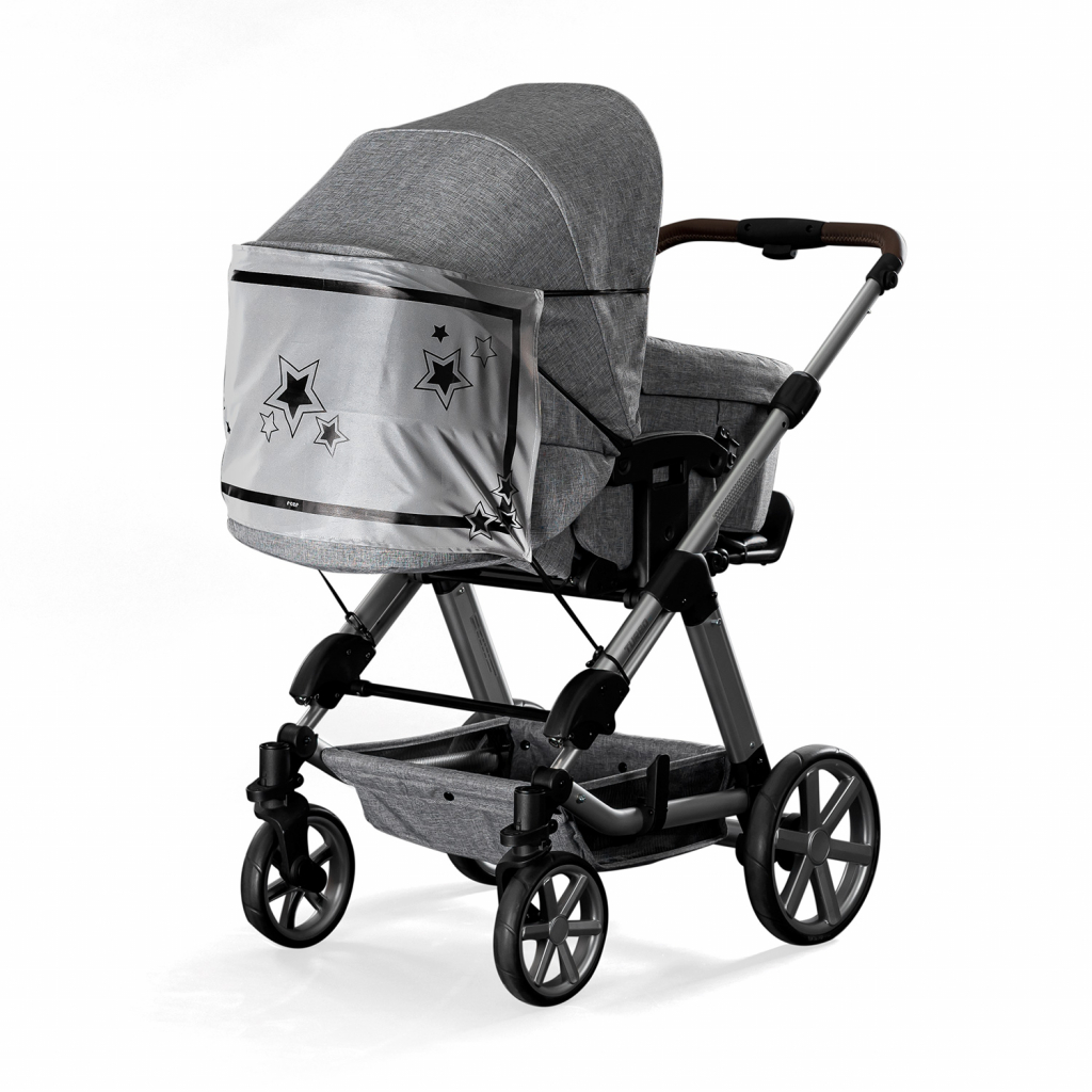 Reflexní potah kočárku vyrobený z reflexního polyesteru odráží světlo od světlometů. To zajišťuje výrazně lepší viditelnost ve tmě. Díky svým rozměrům 70 x 35 cm vzniká extra velká odrazná plocha oproti malým polepům reflektoru.