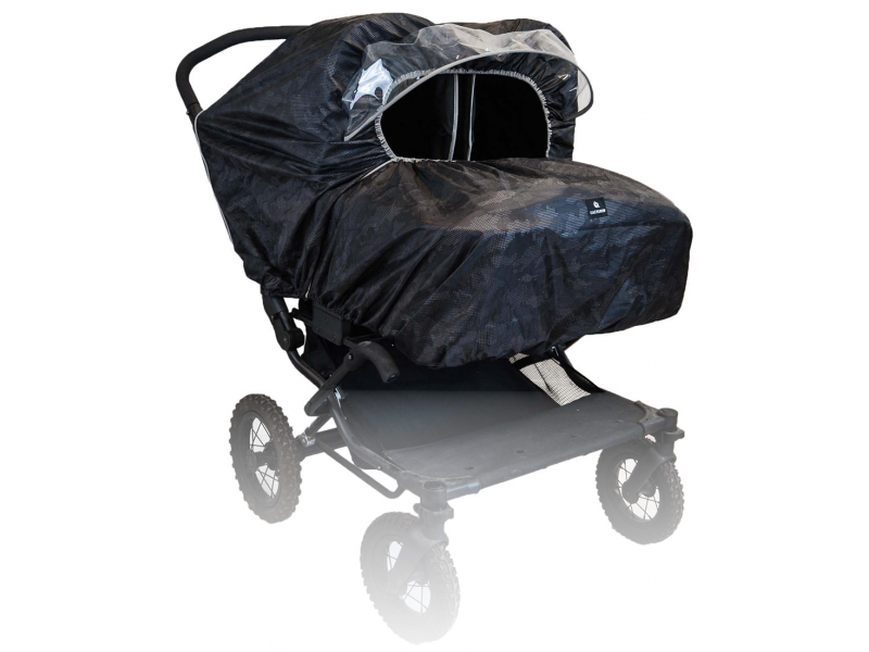 Univerzální pláštěnka na kočárek pro dvojčata je praktická ochrana proti dešti a větru. Průhledná přední clona chrání děti a zároveň nechává dovnitř kočárku proudit světlo a umožňuje výhled z kočárku. Velký přední otvor zajišťuje příjemné větrání. Pláštěnka má boční zip, díky kterému ji snadno otevřete a rychle sundáte i mokrou, a to s minimálním hlukem. Pro bezpečnější pohyb za šera je doplněná reflexními prvky. Po použití ji snadno složíte do integrované kapsy.