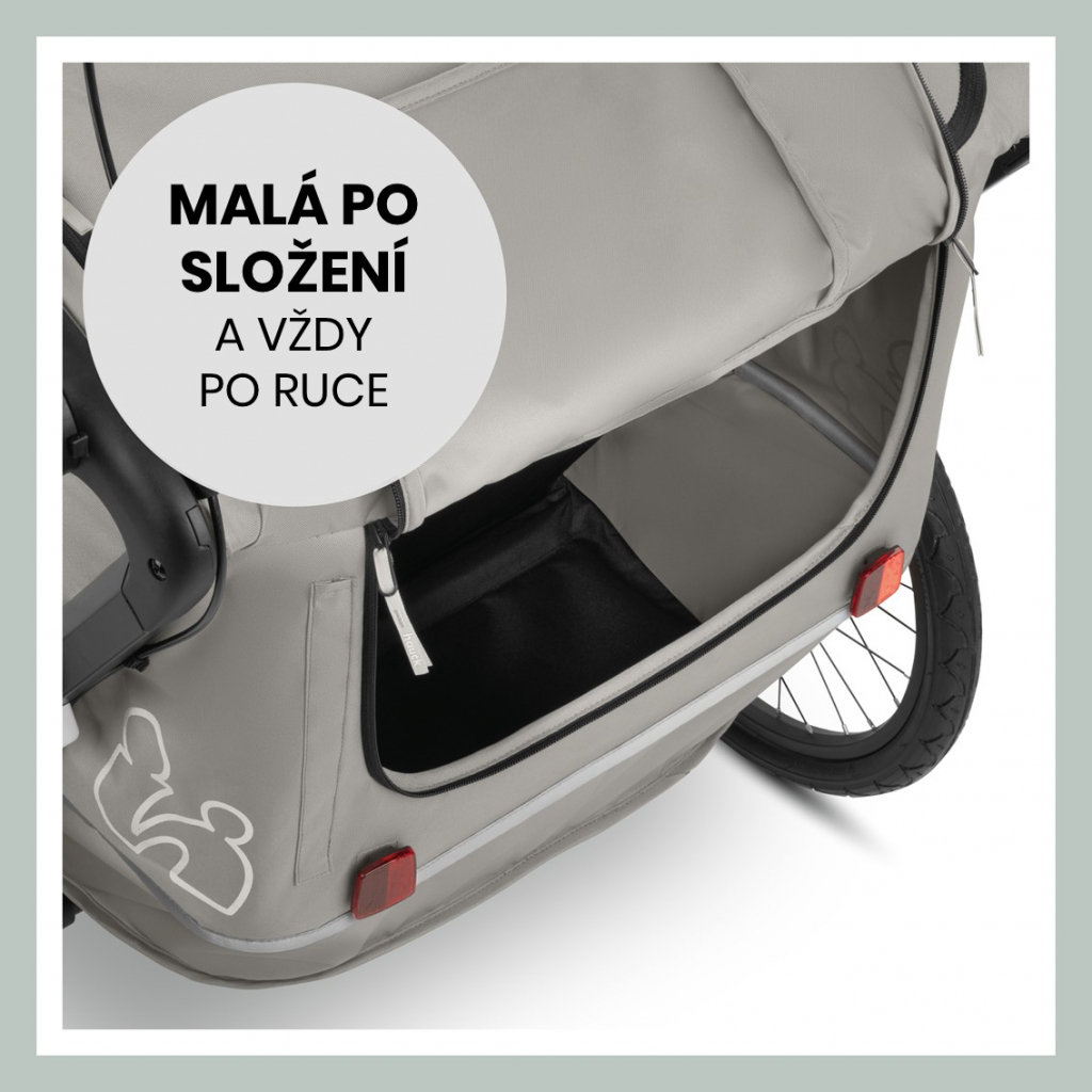 Zastihl vás náhlý déšť? Žádný problém! Suchou pláštěnku snadno složíte do malých rozměrů a uschováte do úložného prostoru v cyklovozíku BIKE N WALK DUO, tak ji budete mít vždy rychle po ruce a můžete ji v případě potřeby snadno a rychle nasadit během chviličky na cyklovozík.