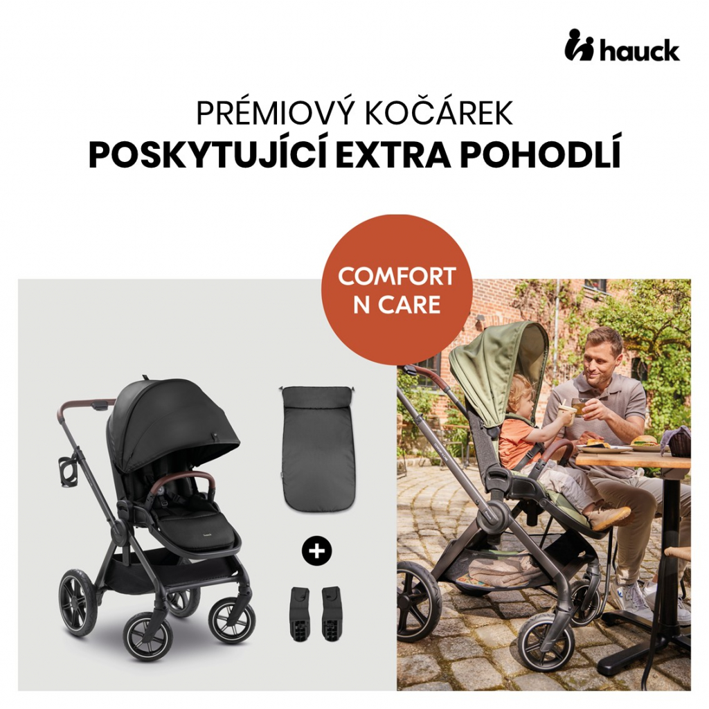 Hauck Sporťák Comfort N Care + nánožník / adaptér na autosedačku, Black