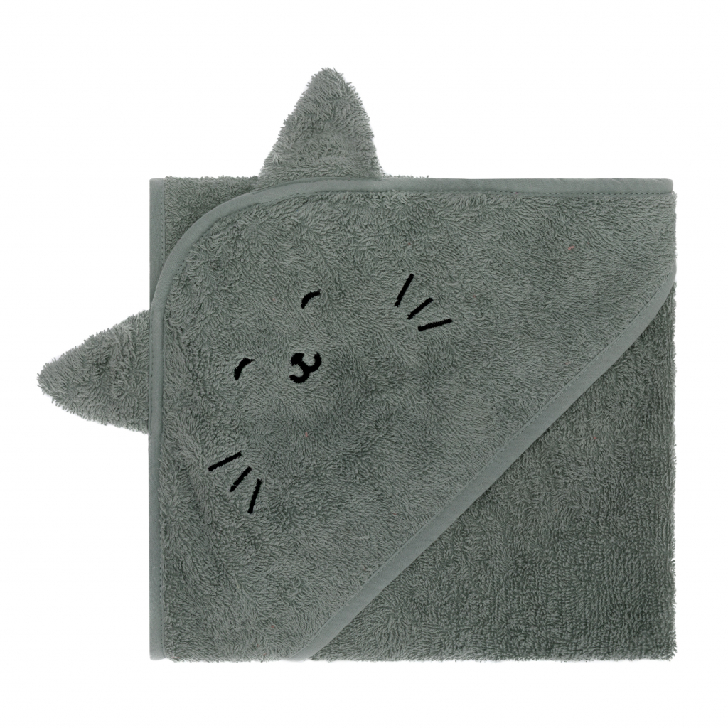 Fillikid Osuška s kapucí - animal cat green 75x75cm