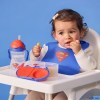 Flexibilní silikonové víčko umožňuje uložit do jedné přihrádky celý kus ovoce, například jablko, a do druhé jogurt nebo pyré (nikoliv tekutiny). Jednoduché otevírání podporuje samostatnost dětí a usnadňuje každodenní svačiny bez zbytečného nepořádku.