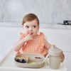 Vodotěsné víčko pomáhá udržet čerstvost jídla a můžete jej použít také jako další talířek na servírování. Zakřivené strany usnadní nabírání jídla a podporují děti při začátcích samostatného krmení. Silná protiskluzová přísavka udrží talířek na svém místě a po jídle ji lze snadno uvolnit zatažením za "záložku".
