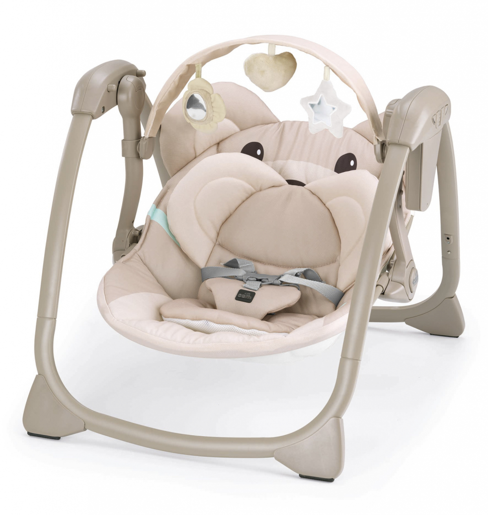 Bohaté polstrování spolu s měkkou látkou tvoří komfortní prostředí pro každé dítě. Zádovou opěrku lze nastavit do 2 poloh. Aby se miminko v lehačce nenudilo, je vybavená výškově nastavitelnou hrazdou s plyšovými hračkami, které je možné v případě potřeby sundat. Potah lehačky je možné prát na 30°C v pračce. Samotné houpání probíhá pomocí vestavěného motoru, který je poháněn buď pomocí baterie, anebo po zapojení do sítě. Lehačka disponuje 5 nastavitelnými rychlostmi houpání a časovačem, který zajistí automatické vypnutí. Součástí je také 15 melodií a 5 zvuků přírody pro zklidnění dítěte. Lehačku snadno složíte a rozložíte, ve složeném stavu pak zabere minimum místa.