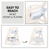 SNADNO PŘÍSTUPNÉ PŘI JÍDLE I HŘE // Oba boxy jsou vždy snadno přístupné. Velký box lze ve vysoké židli posouvat dopředu a dozadu, což usnadňuje ukládání hraček.