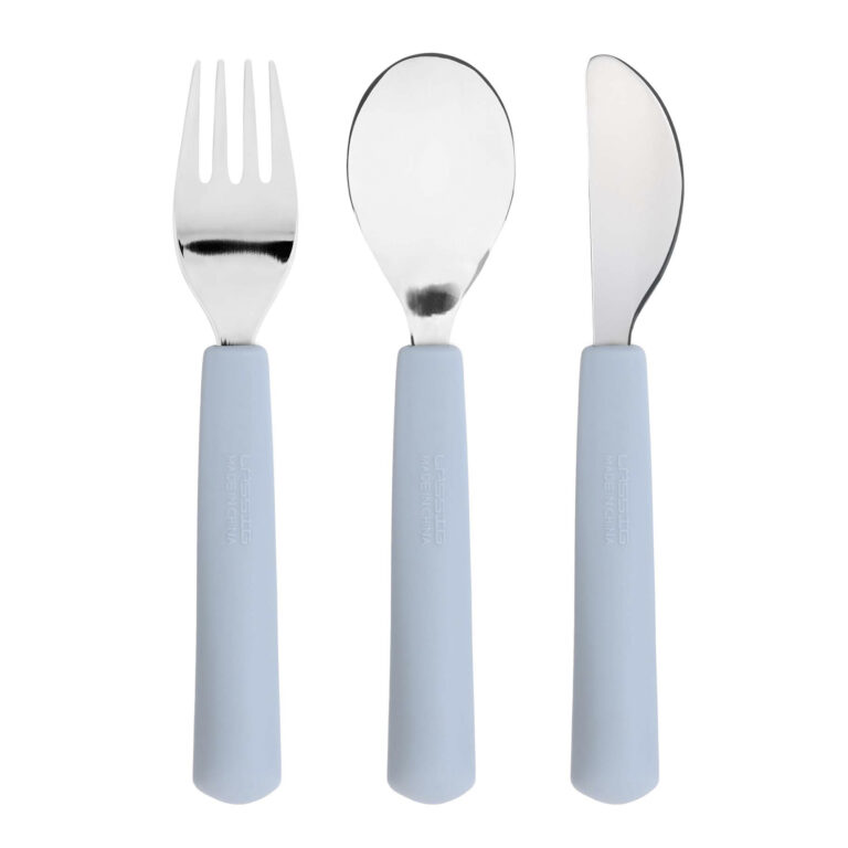 Dětský příbor se silikonovou rukojetí je skvělým pomocníkem při stolování a prvních pokusech vaší ratolesti se vlastnoručně nakrmit. Společně se samostatně dostupným silikonovým talířem a miskou jsou děti připraveny na všechna jídla.
