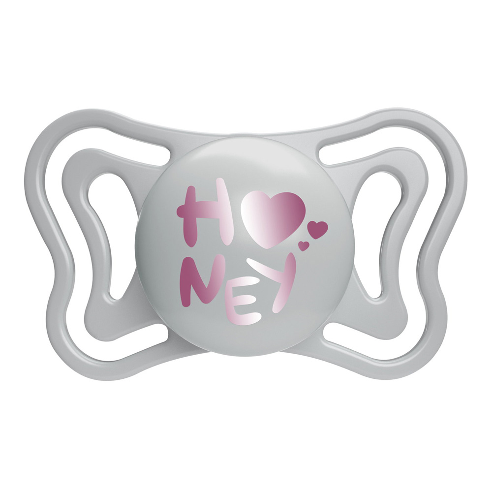 - Extrémně měkká zúžená pata šidítka umožňuje dítěti zavřít ústa a snižuje riziko nerovných zubních oblouků (ortodonticky správné)