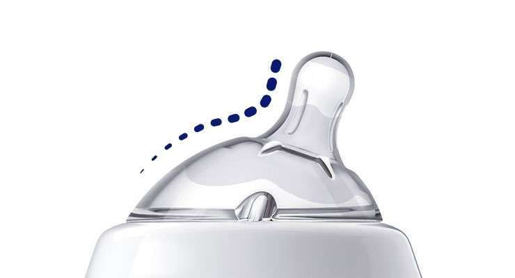 Nakloněný tvar dudlíku podporuje pohodlnou a přirozenou polohu pro novorozence. Díky tvaru prsu dudlík usnadňuje přechod mezi kojením a láhví už od prvních krmení.