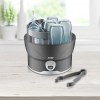 Pokud jsou láhve znovu potřeba ihned po procesu dezinfekce, jsou láhve stále velmi horké. Přiložené kleště umožňují snadné vyjmutí jednotlivých dílů.