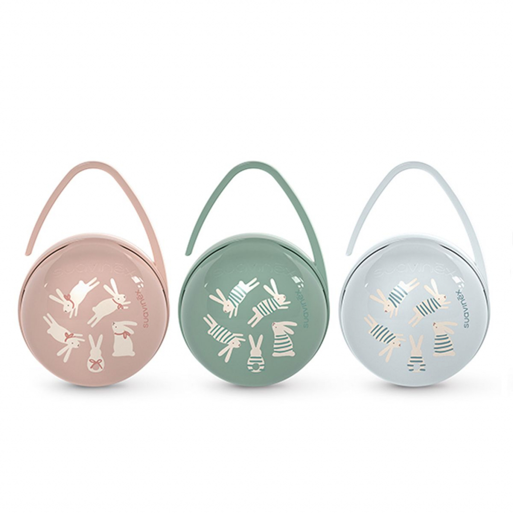 Pouzdro na dudlíky značky Suavinex s kapacitou až pro 2 dudlíky.