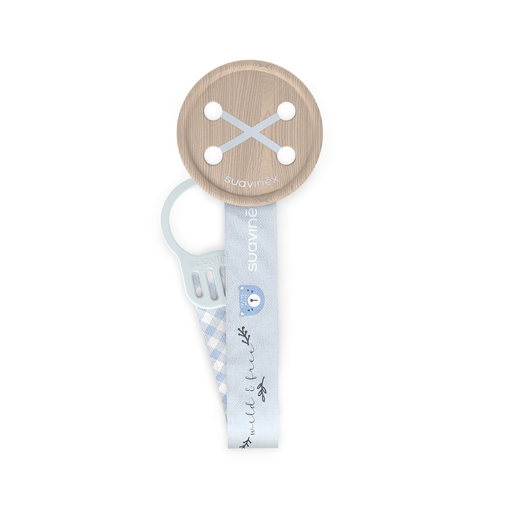 SUAVINEX - Klip na dudlík se stuhou WILD & FREE - modrý