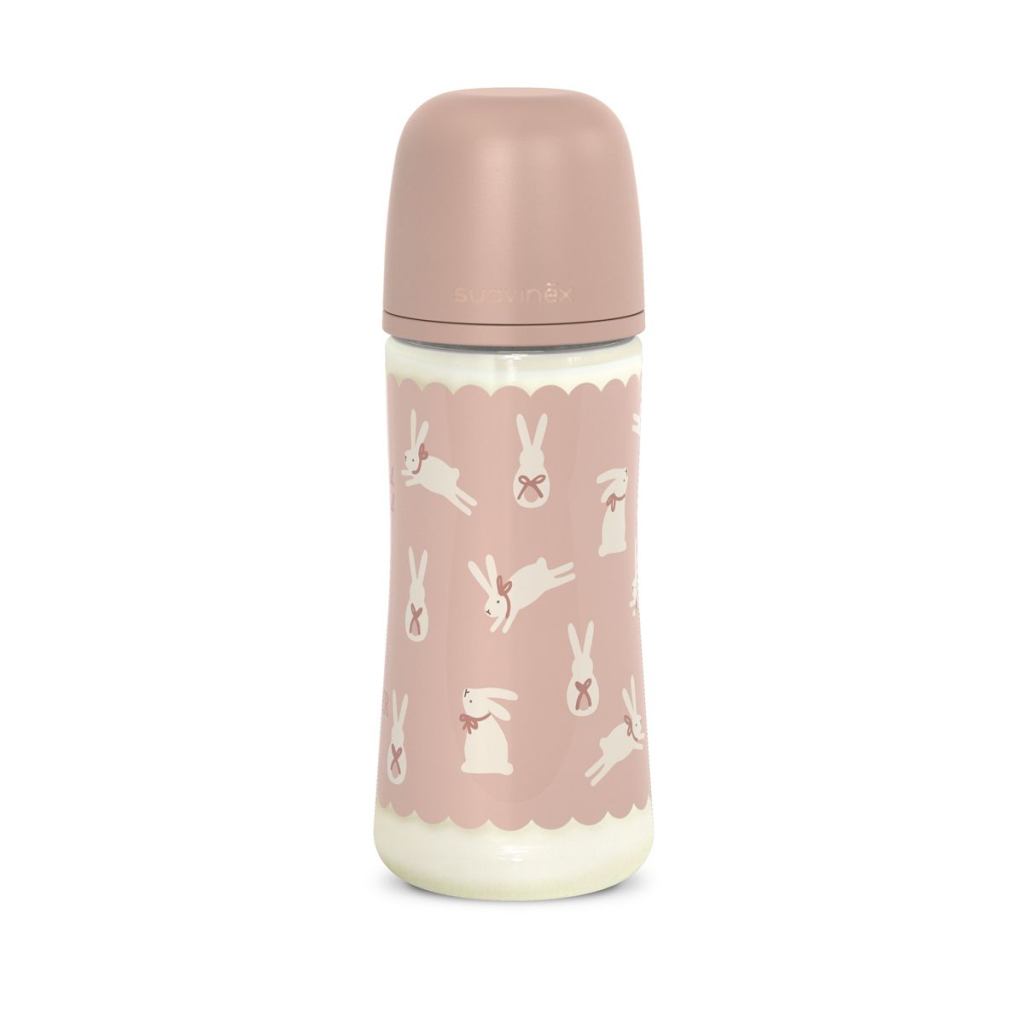 SUAVINEX - Kojenecká láhev WONDERLAND NEW 360ml FYZIOL PRŮTOK L - růžový králík