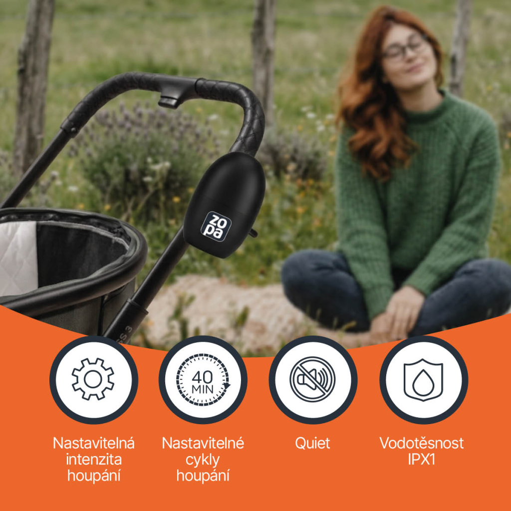 Proměňte každý kočárek v uklidňující kolébku. Houpadlo ZOPA Bobby jemně simuluje přirozený pohyb, který miminka milují – a pomáhá jim rychleji usnout i zůstat déle v klidu.