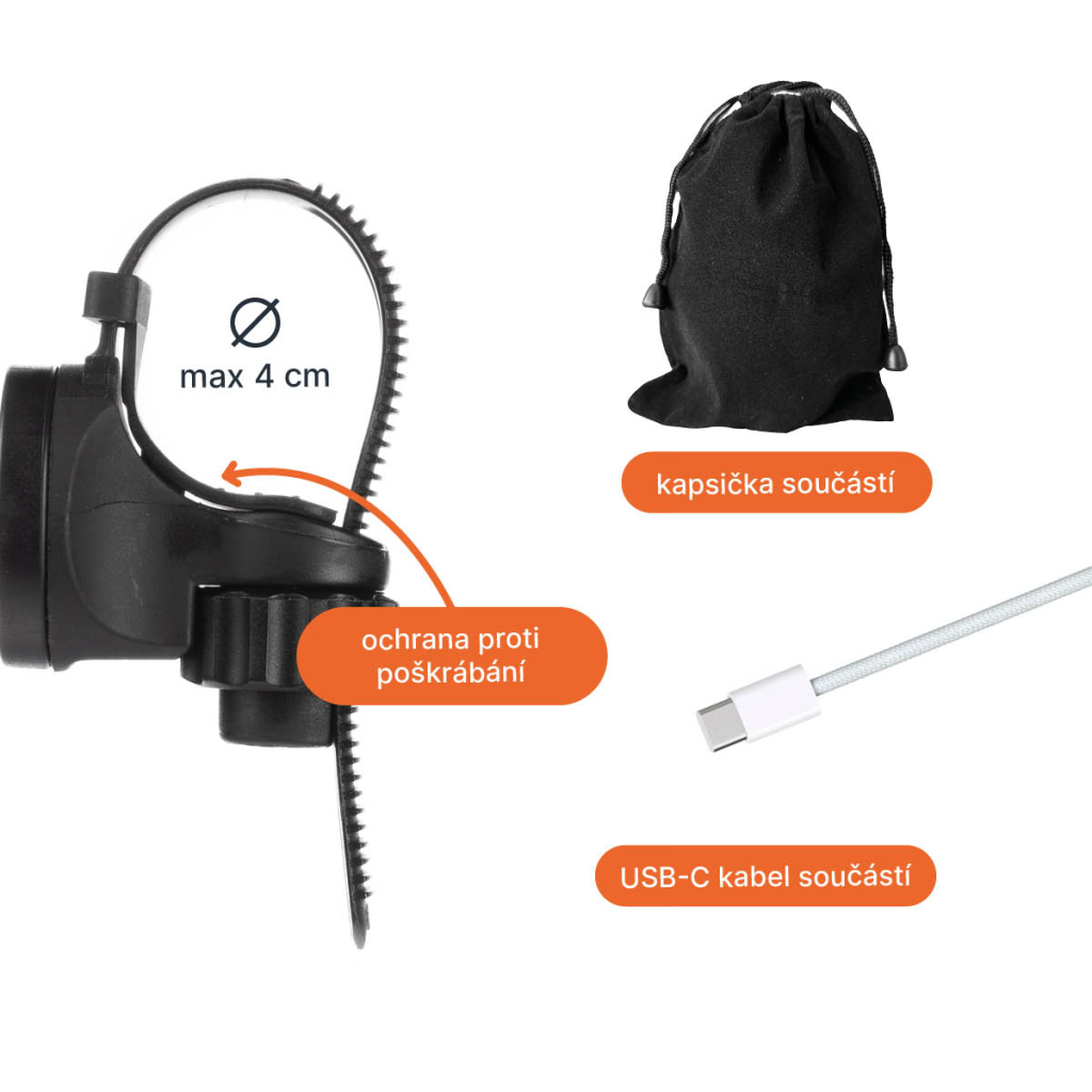 • Nabíjení přes moderní USB-C kabel (součást balení)