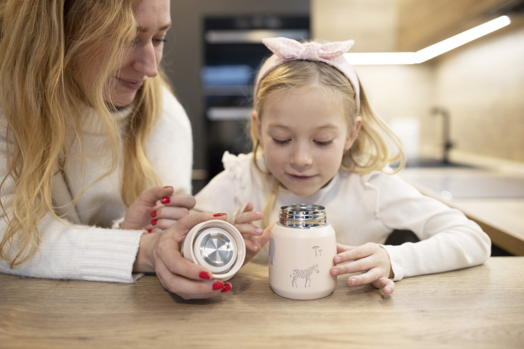 Nerezový materiál oproti plastovým krabičkám neabsorbuje vůně a je odolný vůči skvrnám. Navíc tekutina při přenášení nevyteče, tak jako to bývá u plastových obědových boxů, které dobře netěsní. Široký otvor usnadňuje dojídání, plnění či umývání termosky. Termoska udrží ovoce a zeleninu déle čerstvé. Používáním termosek na tekutiny pomáháte redukovat spotřebu plastů. Termosku myjte v ruce, není vhodná do myčky nádobí.
