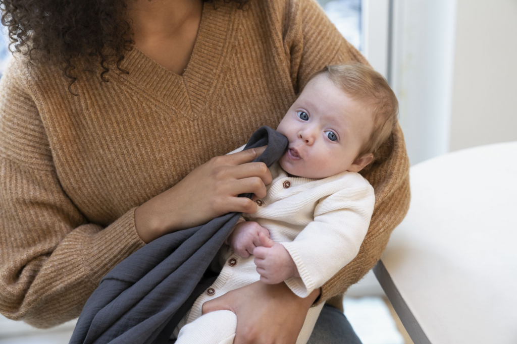 Víceúčelová kojící deka Mom’n Play vám umožní kojit miminko kdekoli a v naprostém soukromí. Je vyrobena z organické bavlny, díky kroužku se dá snadno připevnit kolem krku. Kroužek byl navržen tak, aby se dal využít i jako kousátko. Deku využijete k otření obličeje vašeho miminka nebo k řešení nepředvídaných událostí na cestách.