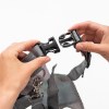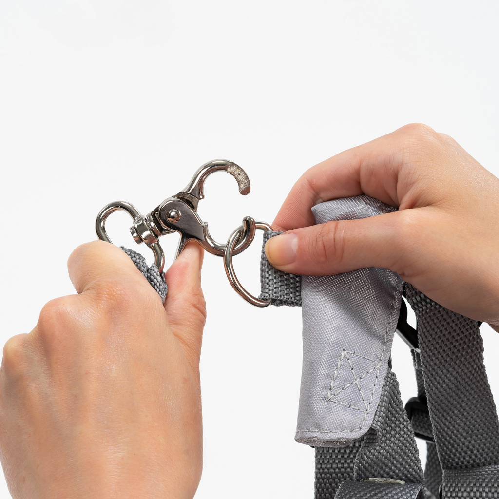 Pro zajištění obzvlášť bezpečného upevnění je postroj opatřen speciální sponou, díky které je nežádoucí rozepnutí téměř nemožné. Dospělí ji zvládnou snadno ovládat jednou rukou, zatímco děti většinou nemají dost síly na to, aby ji samy otevřely. Snadné zapínání a odepínání otěže znamená, že ji lze rychle sundat, když se nepoužívá, aniž byste museli sundávat celý postroj.