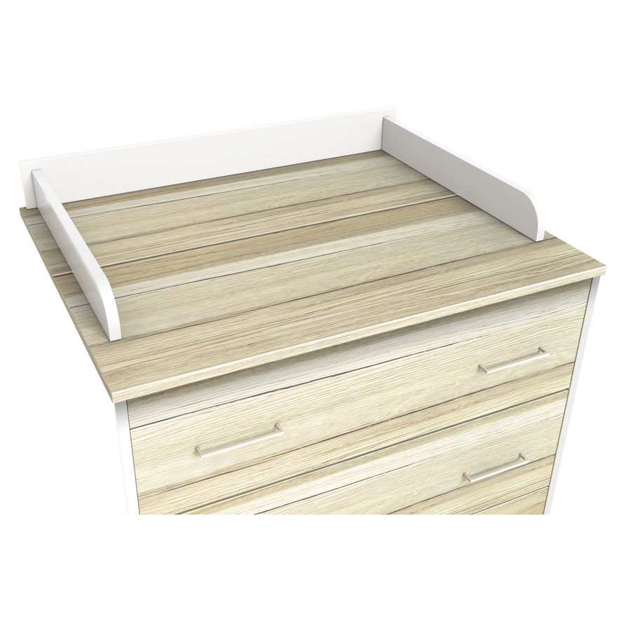 Zvětšuje horní plochu komody Némó Caravelle a zabraňuje posunutí přebalovací podložky mimo ni. Rozměr místa pro přebalovací podložku š.80 x hl.70 cm.