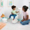 Nočník má také praktický úložný prostor pro všechny drobnosti potřebné během nácviku a sedací část pasuje na většinu typů toalet – kulaté, oválné i D-tvarové. S lehkou montáží, realistickým vzhledem a zábavným designem je tento nočník stejně praktický i hravý.