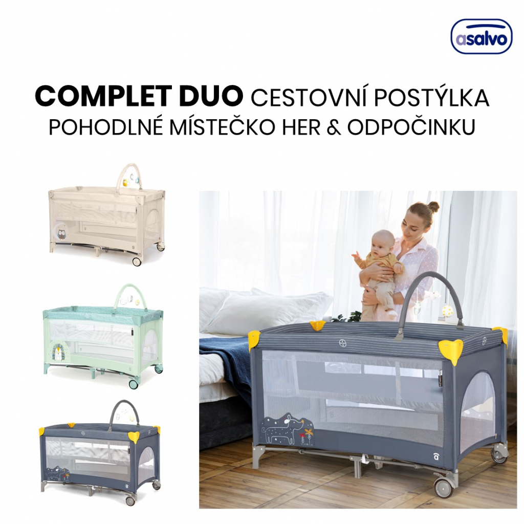 Asalvo COMPLET DUO cestovní postýlka s druhým dnem a hrazdičkou, owl