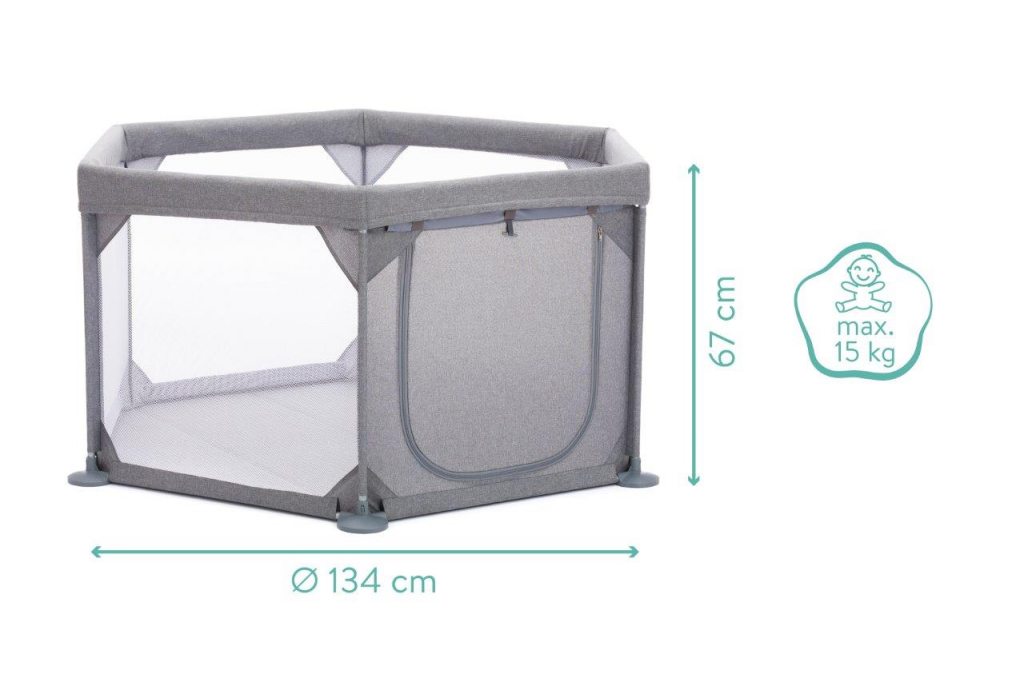 V domě nebo v bytě jsou často nebezpečné věci, které mohou představovat riziko pro aktivní miminka, nejpozději když začnou lézt nebo chodit. Tato 6hranná ohrádka od Fillikid zajistí vašemu malému pokladu větší bezpečí. Polstrovaná podlaha nabízí příjemný hrací povrch a dodatečné teplo jako ochranu před studenými dlaždicemi. Stabilní ohrádka je postavena během okamžiku. S přepravní taškou ji pohodlně sbalíte a vezmete všude, aby si v ní miminko mohlo vždy bezpečně hrát. Díky bočním stěnám ze síťoviny můžete mít o svém malém nezbedníku mít dokonalý přehled a v ohrádce může cirkulovat vzduch. Na boku je otvor na zip, takže vaše dítě může pod dohledem samostatně vlézt a zase vylézt. Látku můžete od vstupu prakticky srolovat a zapnout.