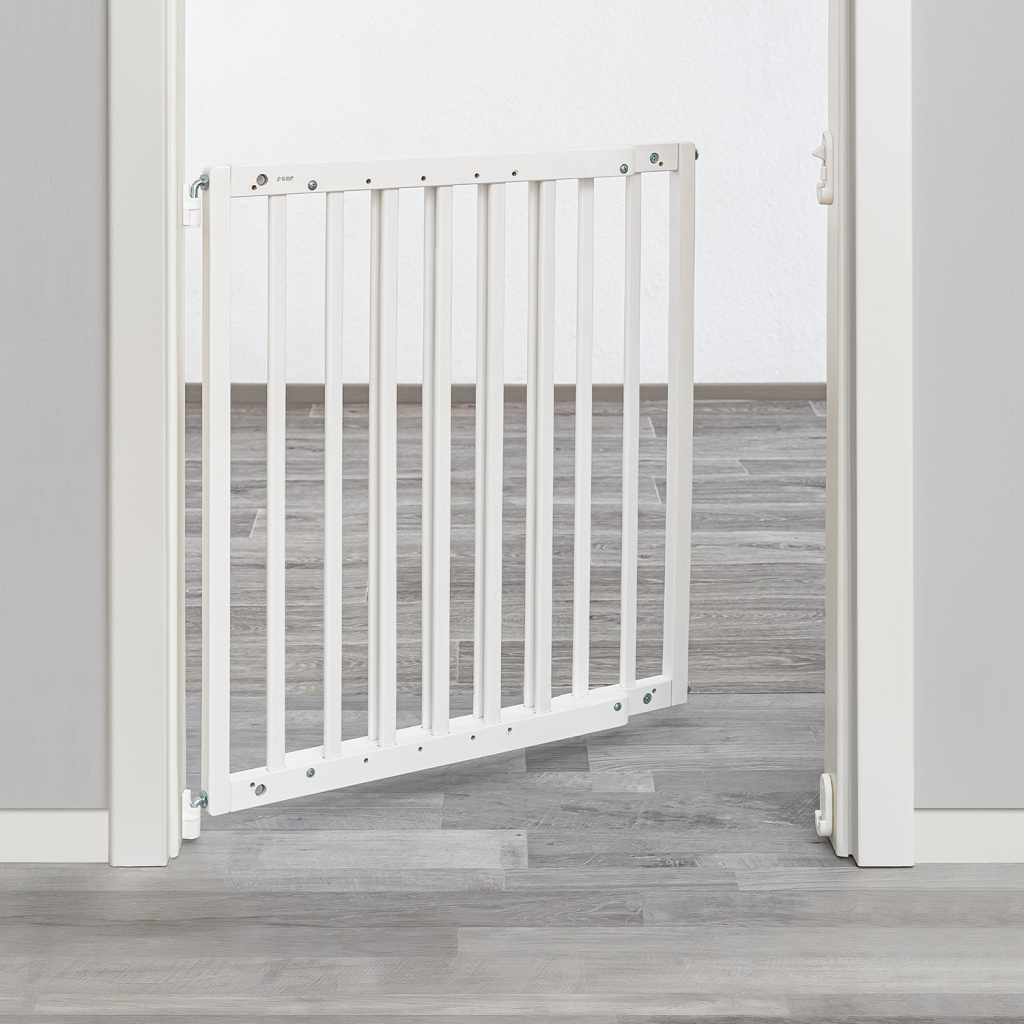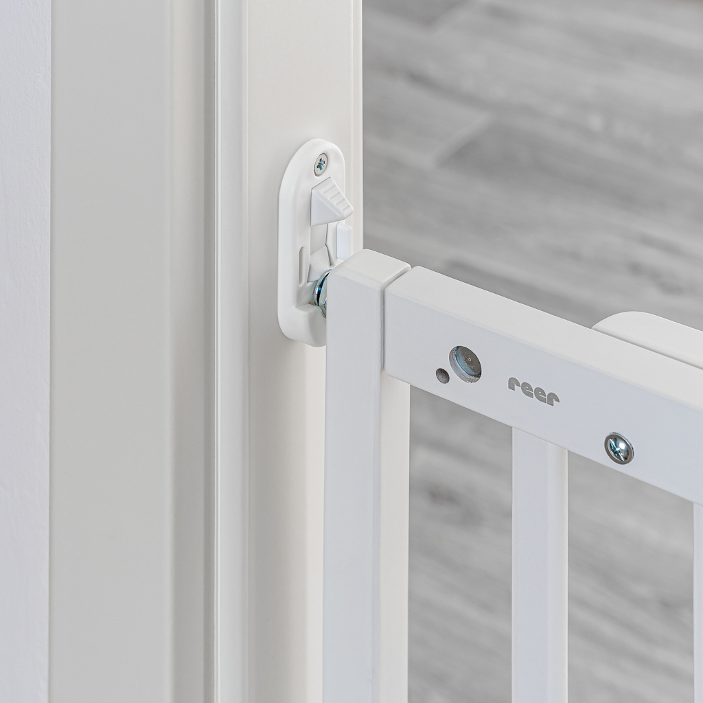 Jakmile vaše děti začnou lézt, chtějí začít zkoumat své prostředí.V tak nízkém věku však ještě nedokážou rozpoznat a správně posoudit nebezpečí.To může často vést k drobným, ale i vážnějším nehodám.Aby si děti mohly užívat bezstarostné objevování světa kolem sebe, je třeba přijmout správná opatření, aby jejich prostředí bylo bezpečné.Šroubovací bezpečnostní zábrana vám pomůže spolehlivě zajistit oblasti schodiště, zabránit nebezpečným pádům a vytvořit bezpečné prostředí pro vaše dítě.