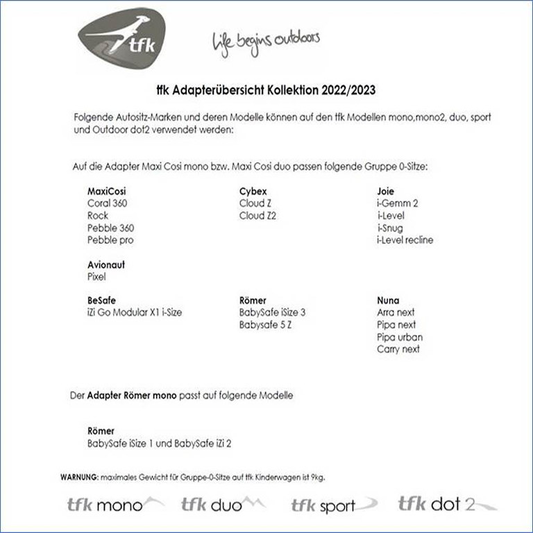 tfk adaptér na autosedačky skupiny 0, na kočárek mono/pro Tfk adapter mono/pro group 0