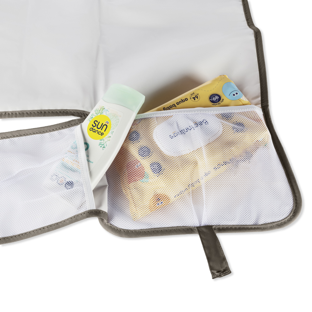 Kompaktní přebalovací podložka se třemi kapsami, která usnadní přebalování na cestách. Snadno se čistí, nezabere místo a vše potřebné máte vždy při ruce.